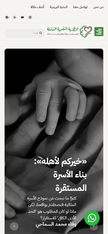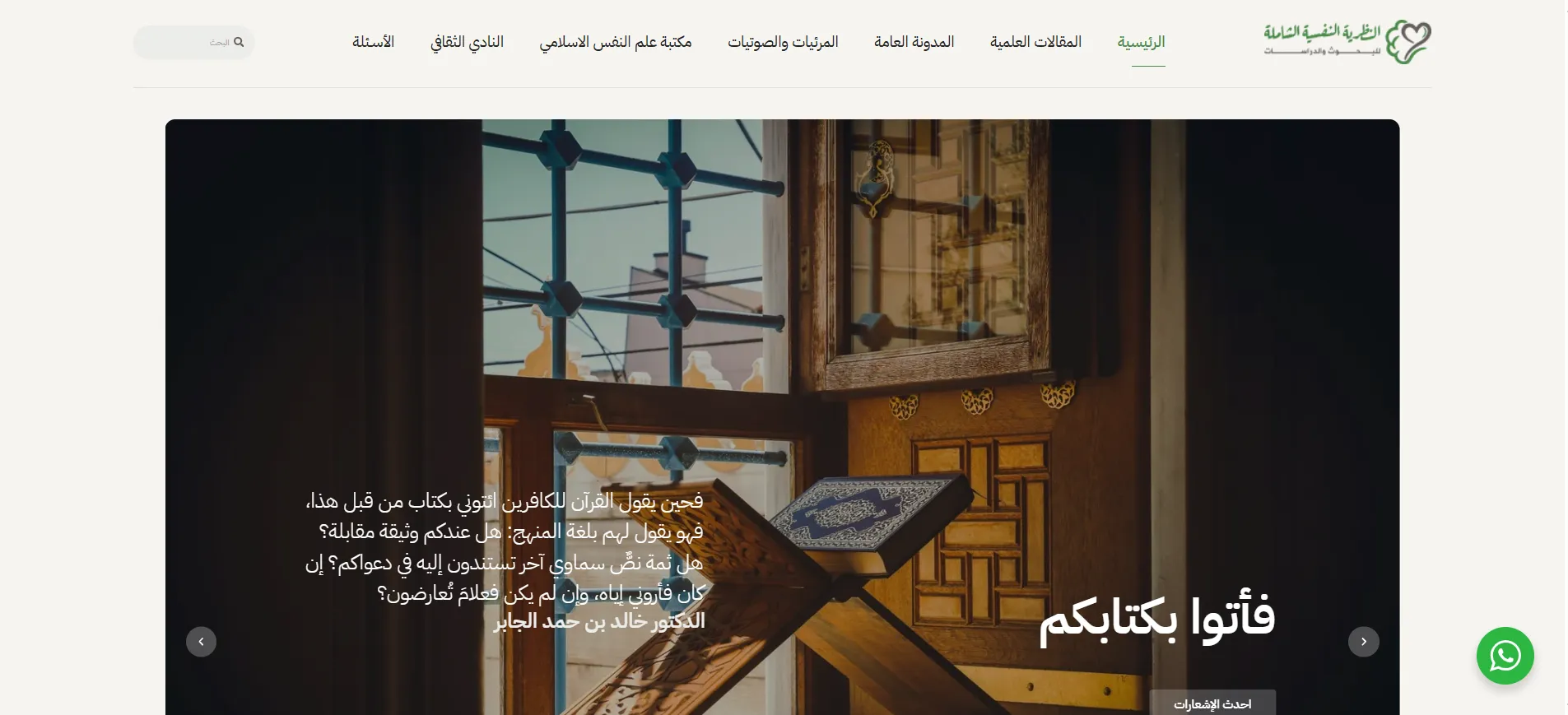 The completed website serves as a comprehensive digital hub for Islamic psychology research and community engagement. The diverse content sections successfully organize scientific articles, multimedia, and library resources for easy academic access. Newsletter and social media integrations have helped grow an engaged community of researchers and students. The Arabic RTL design presents complex academic content in a clear, accessible format that enhances scholarly credibility.
